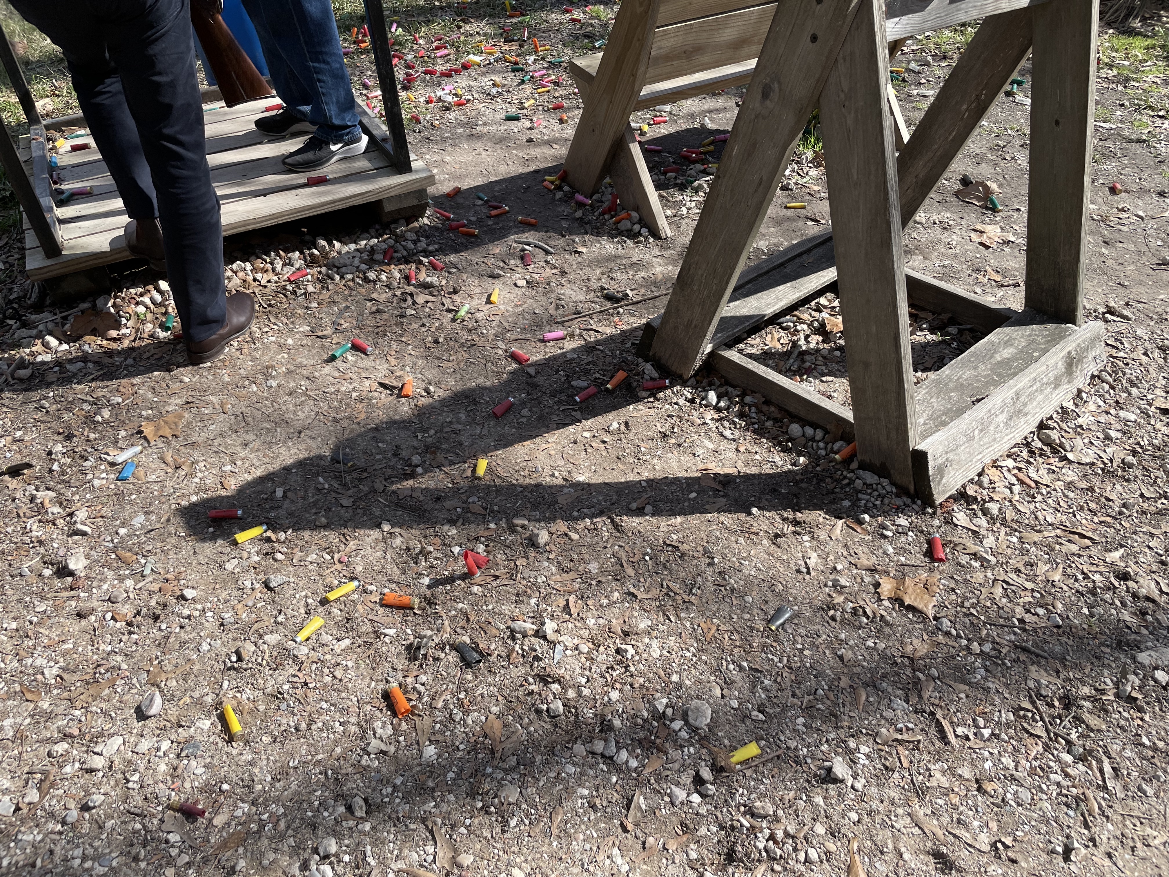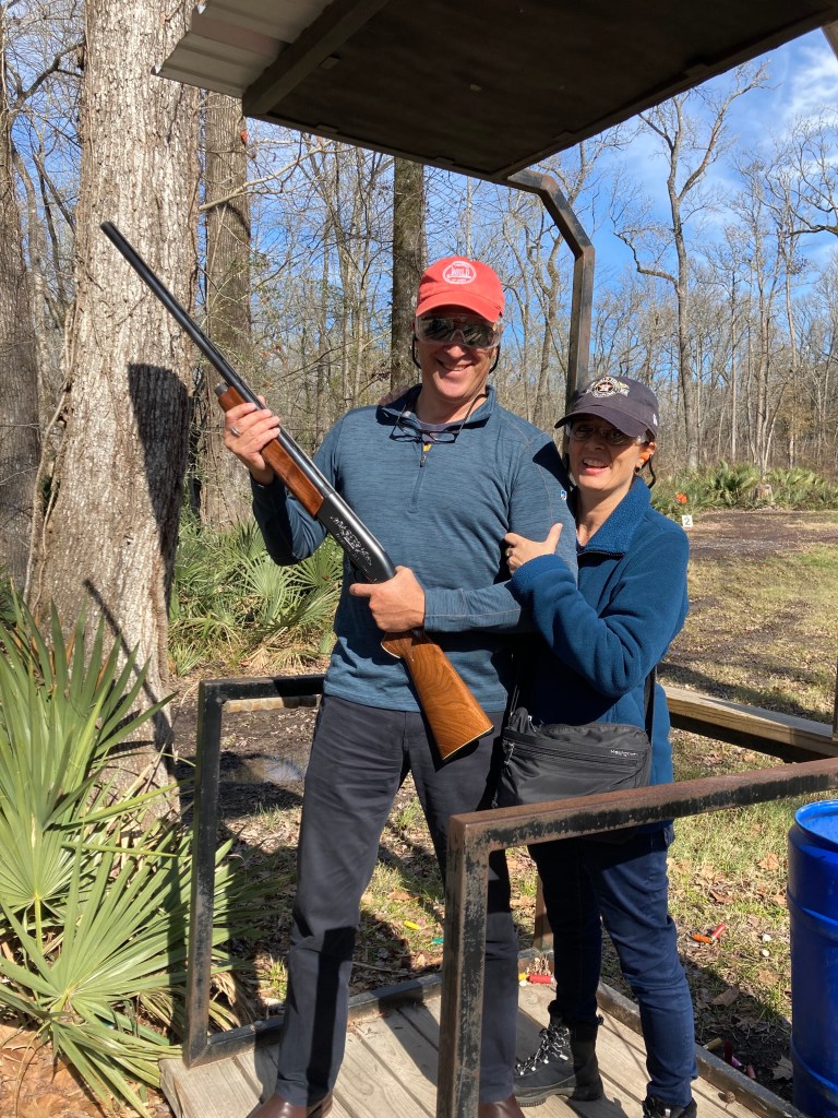 While in Texas, I decided to do some research for my next novel, in which (spoiler alert) my protagonist may have to fire a gun. I needed to know how shooting feels, sounds, looks, and smells. My dear friend, Marc Hakala, pulled his guns from under the bed (okay probably from somewhere more secure than that, but you get my drift), polished them off, tested them, and took them (and us) for a day of skeet shooting—firing at moving clay targets—with shotguns.