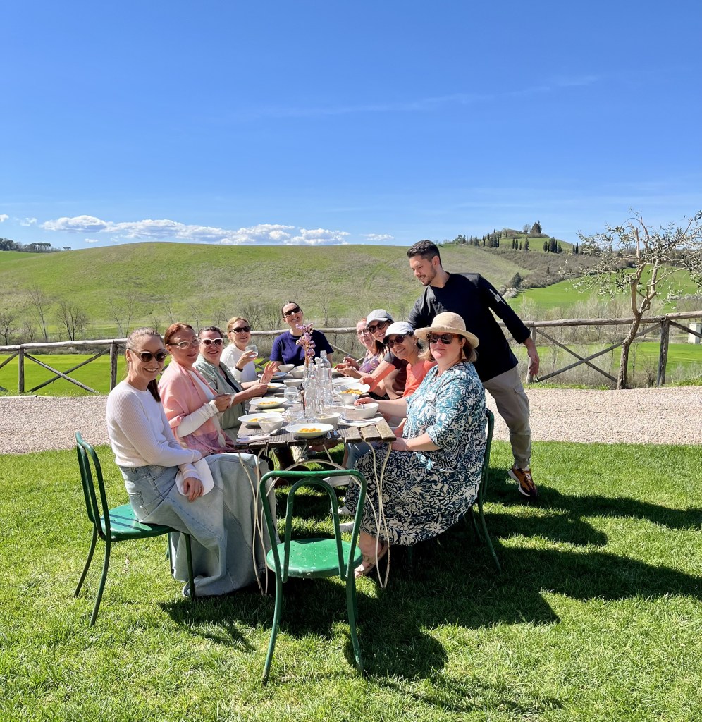 It was amazing. Tuscany. Beautiful weather. A gorgeous villa, two (sometimes) friendly cats, and a wonderful private chef, Riccardo, who was not only personable, but also accommodating with dietary needs, and served delicious and authentic Italian treats. In addition to an extensive daily writing schedule, the group was offered twice daily yoga sessions with Cally, an afternoon of sketching and painting guided by an experienced artist, and we made pasta, swam in hot springs, and enjoyed a walking tour of Siena. Perfect.